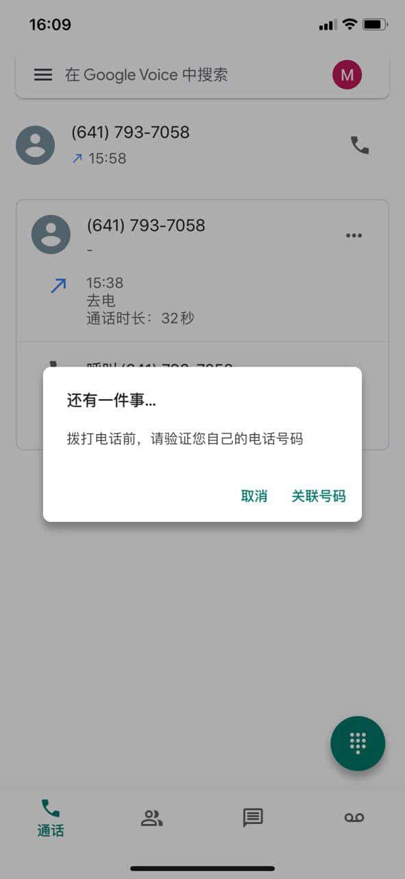 Google Voice号码未绑定/关联实体电话号码(Forwarding Number),拨打电话的时候弹出对话框提示